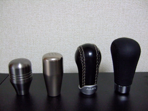 左から順に、15年前のNAロードスターにも使ってたことあるRAZOのノブ。ちなみにNAロードスターは、マツスピのカーボン巻き?のスティックタイプを愛用していましたが、NAロードスターとともに手放しました。