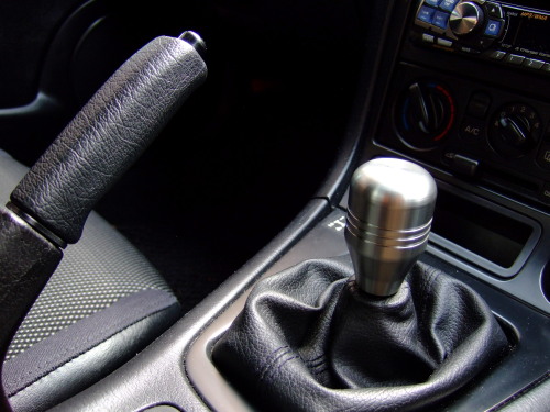 休みの日は、DIY用ドリルでゴリゴリと掘削するも取り付けてみるとピンとこない。サイズでかくて見た目のバランスが悪い?・・・そこで、お蔵入りしていたRAZO(一番左)を取り出し、これも掘削して、シフトブーツにぴったり合わせてみた。