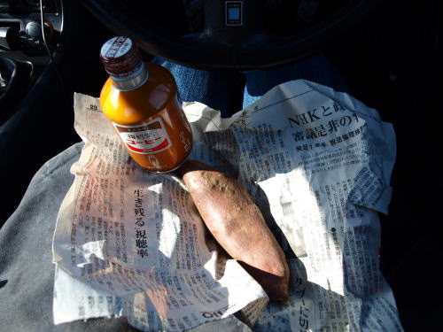 いつもの、「湖畔の里 福富」に行って見た。ヤキイモがまだ営業中。小ぶりなのを選んで・・・本日の昼食?! 家族をもってから10年も経つと、どうにも一人で外食が苦手な(何故か背広着てたらできる・・・)体質になっているようで、折角の単身モードが不燃焼中。明日は、マクドナルドじゃなくて、コンビニ弁当じゃなくて、どっかでちゃんと食事しよう!と思う。